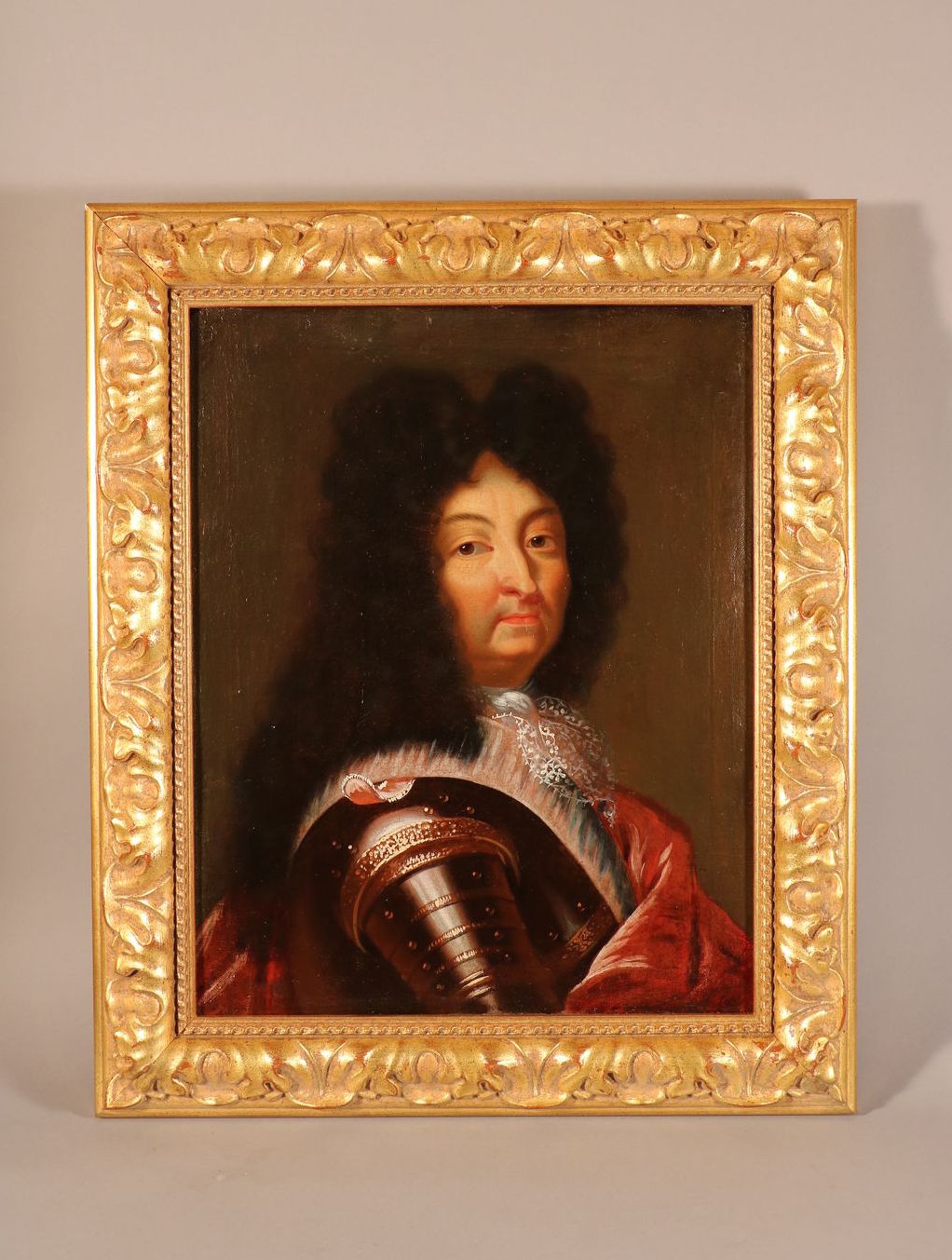 Portrait de Louis XIV en armure, début XVIIIe siècle, huile sur toile. | Antiquaires et Galeries d'art de Versailles