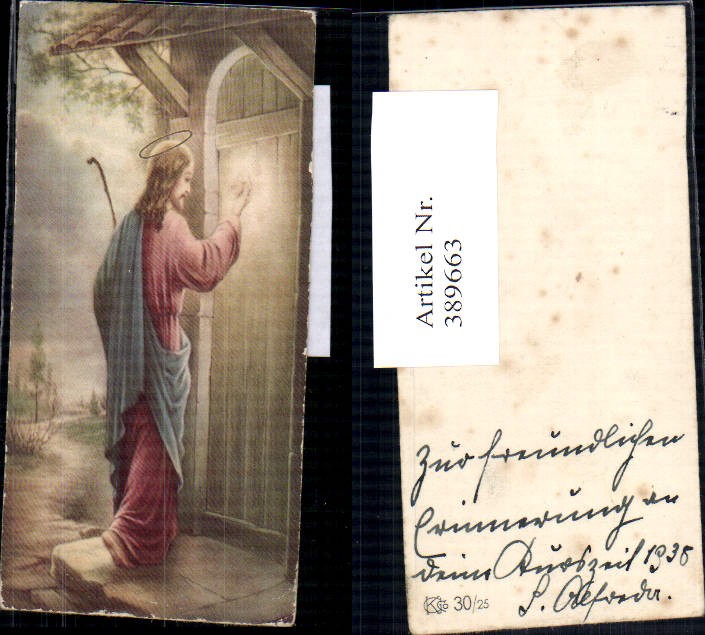 389663,Andachtsbild Heiligenbildchen Jesus klopft an Tür Nr. 389663 - oldthing: Heiligenbilder & -statuen
