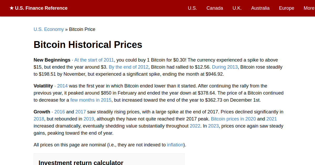 Bitcoin Price History And Guide