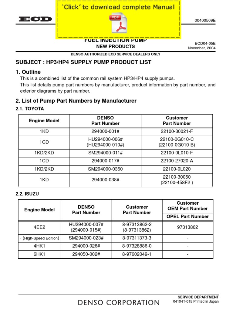 Denso common rail isuzu 4hk1 6hk1 service manual pages